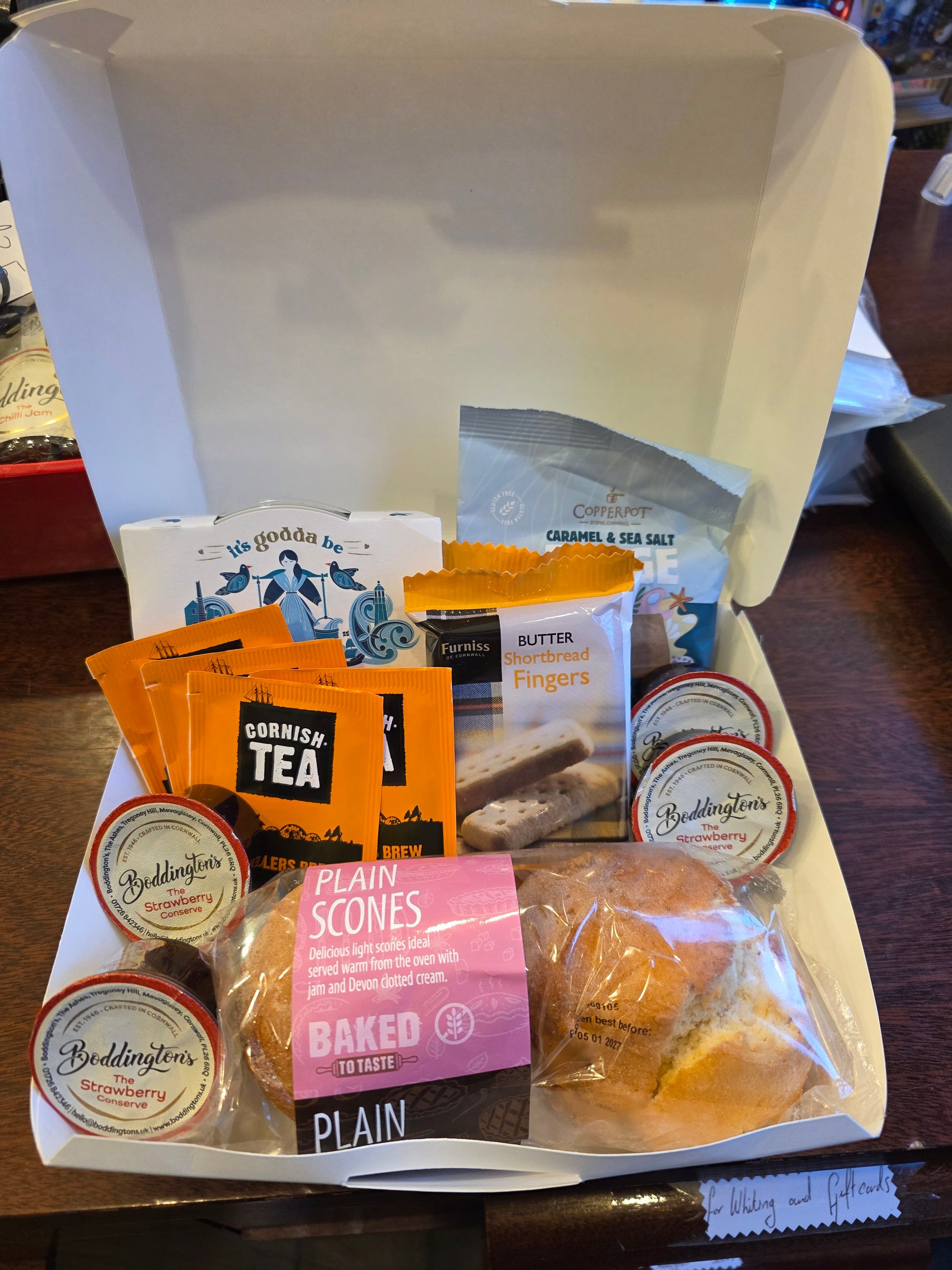 We carefully pack every hamper by hand in Helston using beautiful presentation and quality Cornish products.
